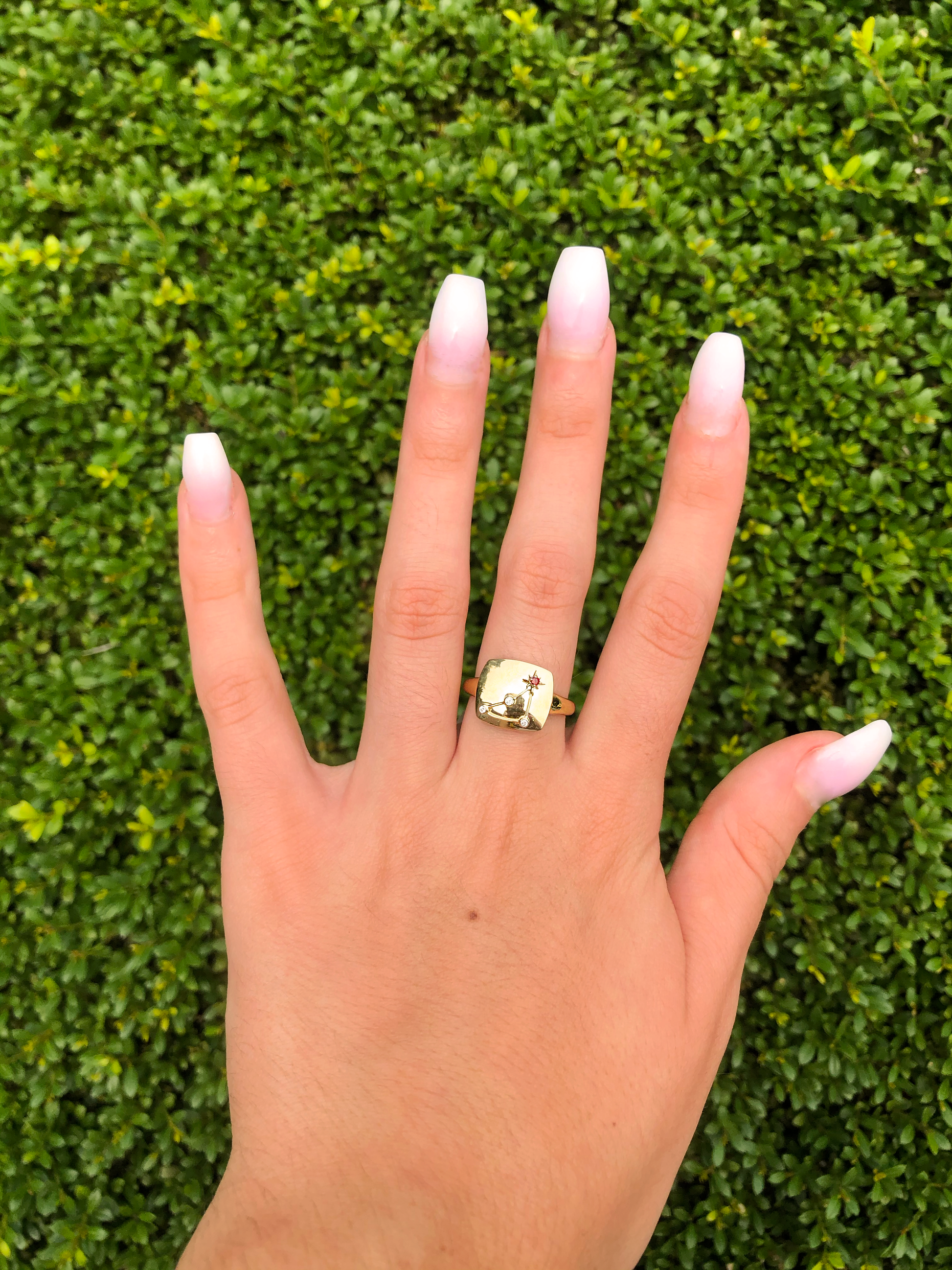 Capricorn Goat Garnet & Diamond Constellation Signet Ring in 14K