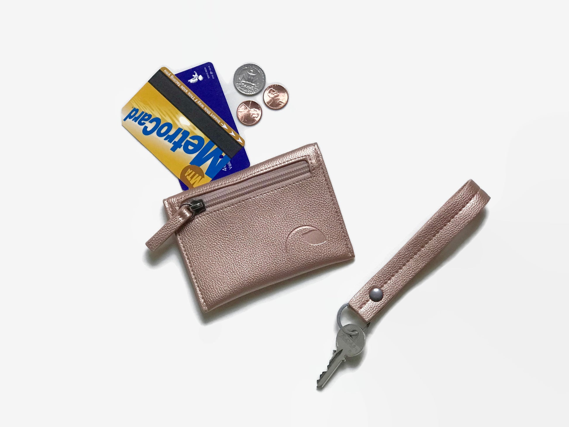 Cute gift set for friends, sisters, moms, and anyone who appreciates minimalist design! Gift set includes the Baltic coin wallet and the Bryant key fob in black or rose gold.