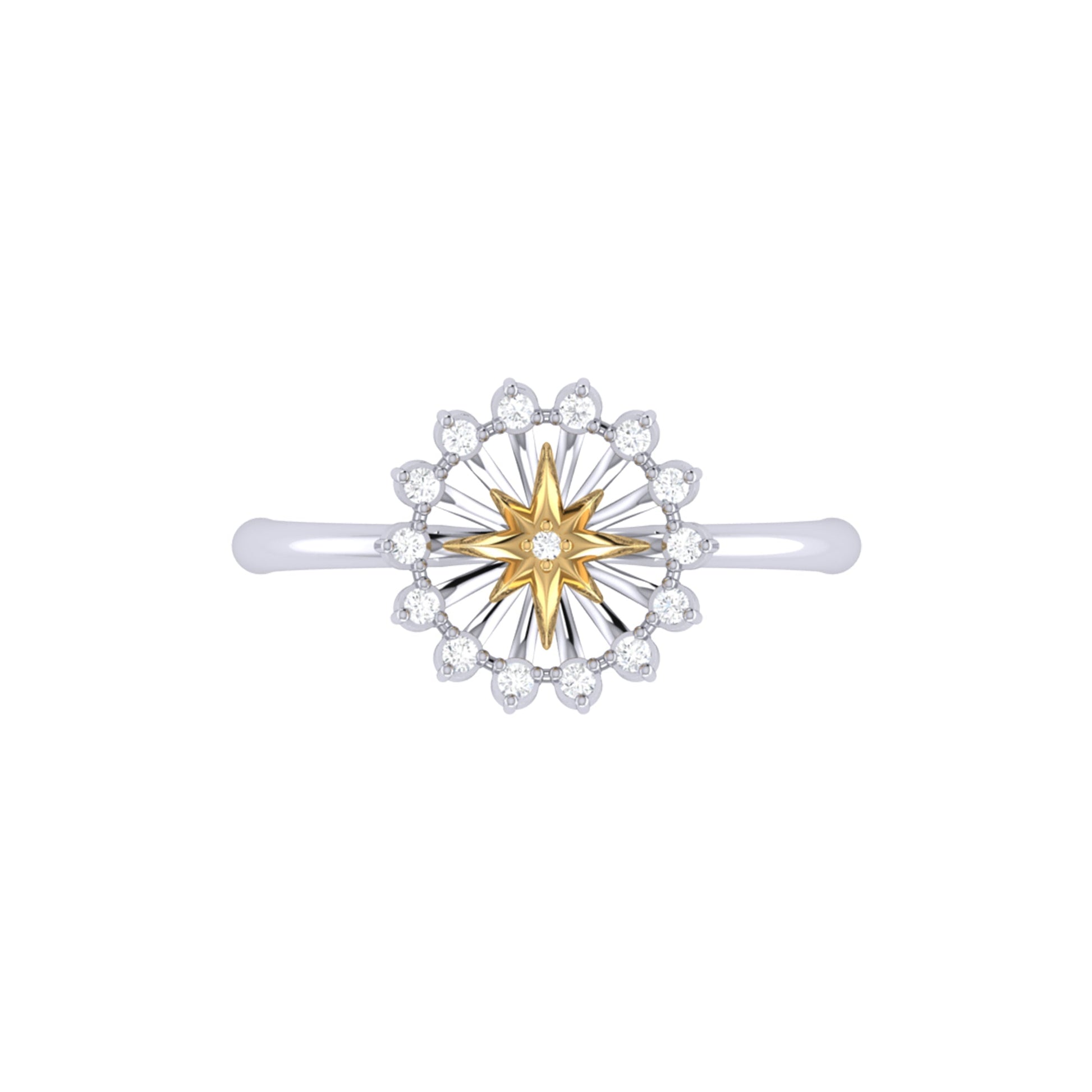 Starburst Two-Tone Diamond Ring in 14K Yellow Gold Vermeil on Sterling