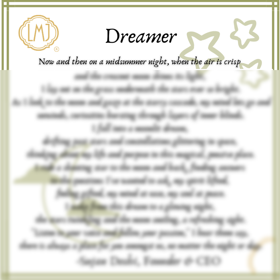 ~ ROOTED IN POETRY | This handmade design comes with a handwritten inspirational poem titled "Dreamer" written by founder, Sujan Doshi. SEE OUR PRODUCT IMAGES for a sneak peak of his poem.